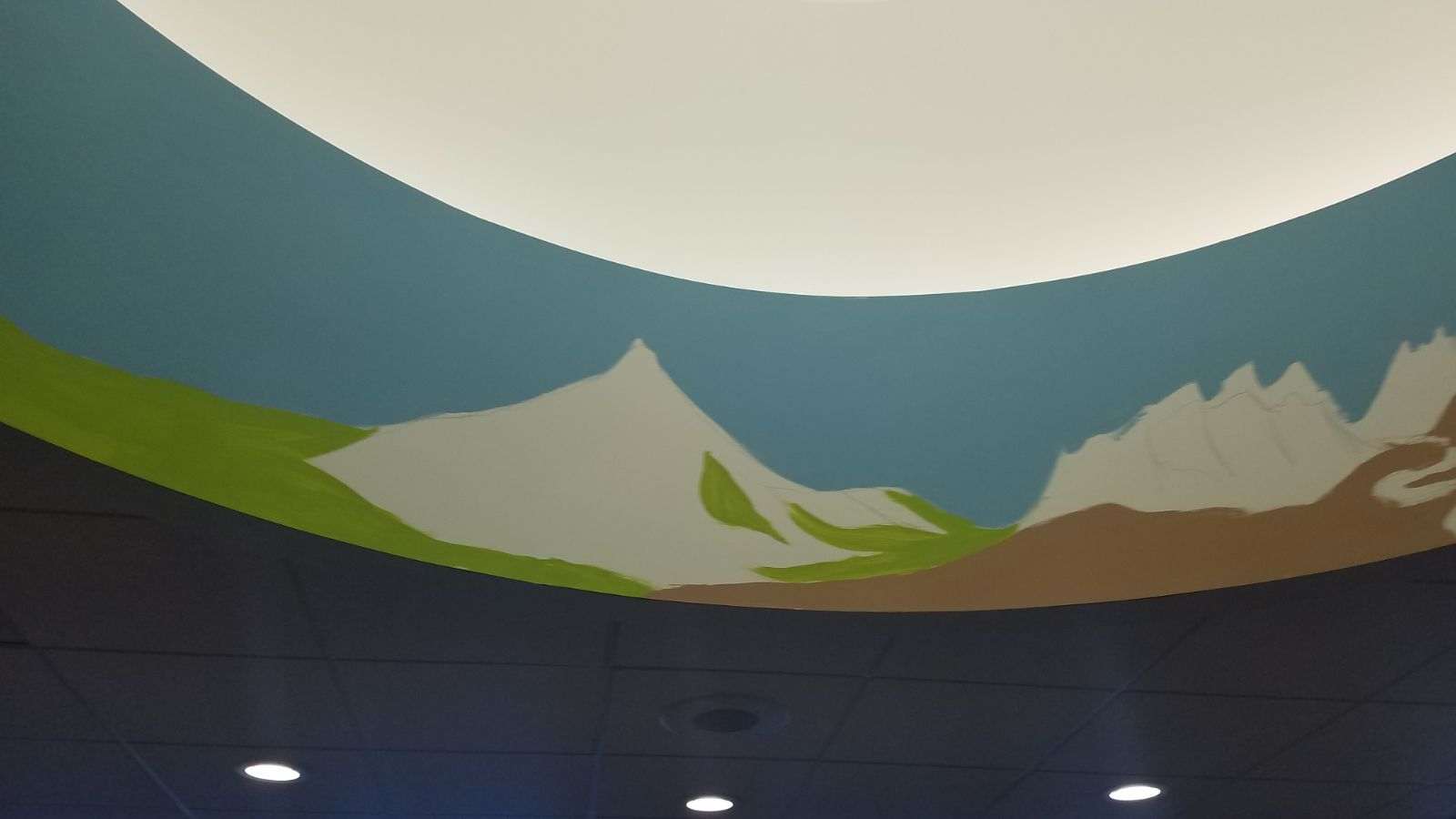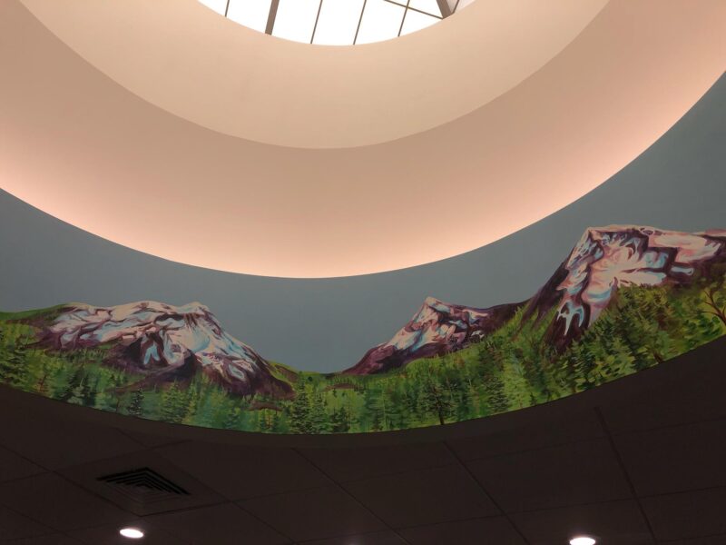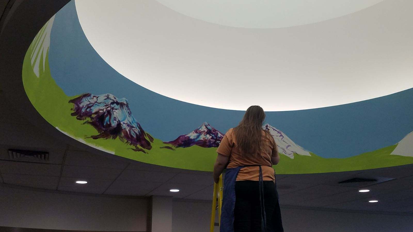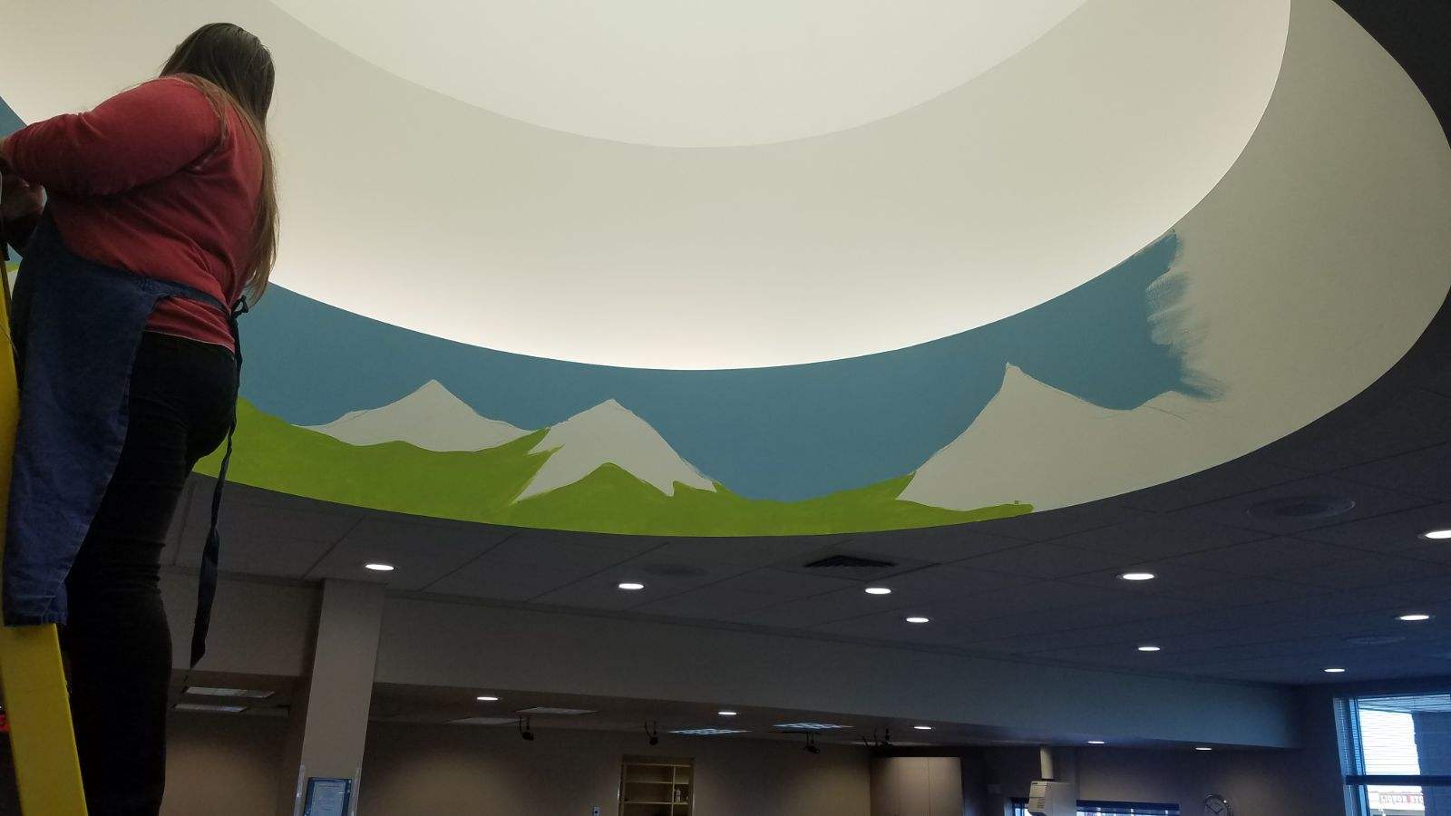 Since we’re not able to invite our community in for the grand unveiling, we thought we’d bring the art to you! Over the past couple weeks, our Redmond branch has been visited by a talented local young artist. Lily Y., a student at Redmond Proficiency Academy, has undertaken a special project to paint the cupola in the center of the branch lobby (in keeping with all social distancing and safety requirements, of course.)
